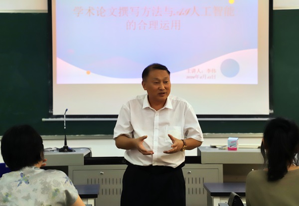 为持续加强师德师风建设,提升教师专业素养,4月15日下午,由党委教师工作部和新闻中心联合主办的“学术论文撰写方法与AI人工智能的合理运用”专题培训在综合楼425教室顺利举行。本次培训由审计处处长、督导室主任、新闻中心副主任李伟主讲。